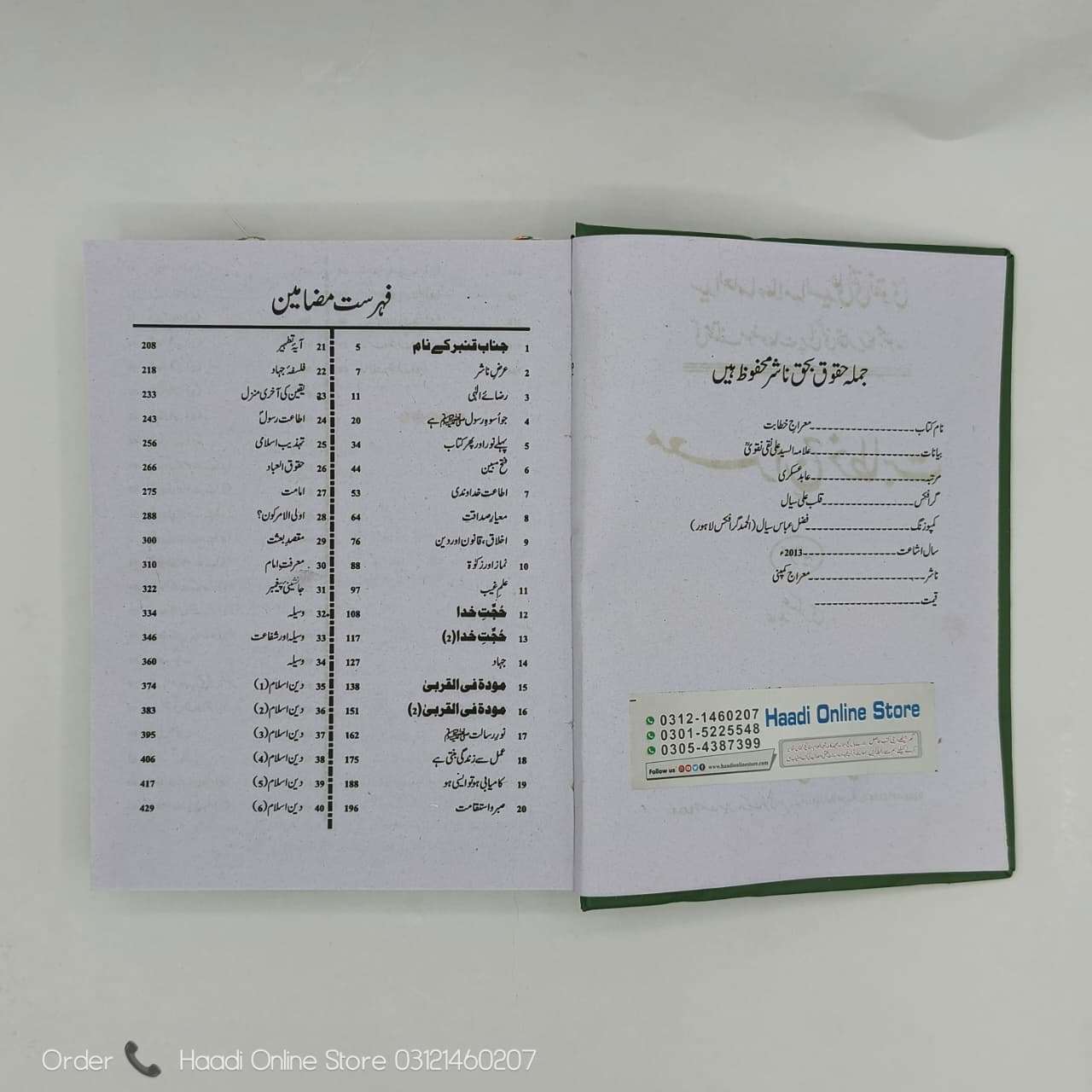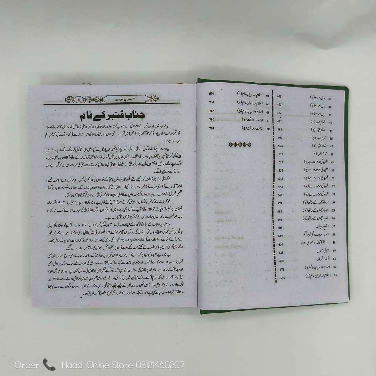 کتاب ہذا کی دوسری خصوصیت یہ ہے کہ یہ علامہ علی نقی صاحب قبلہ کی چھیاسٹھ (66) تقاریر کا مجموعہ ہے۔ تیسری بات یہ ہے کہ ہر تقریر سے پہلے موضوعات اور قبلہ علامہ کے چند اہم نکتوں کو درج کیا گیا ہے جس سے کتاب کے حسن اور دل آویزی میں مزید نکھار پیدا ہو گیا ہے۔ سید العلماء کی ذات گرامی دنیا بھر کے علمی و دینی حلقوں، بالخصوص ہند و پاک میں ایک خاص مقام رکھتی ہے۔ خاص طور پر پاکستان میں تو ان کو بیحد احترام کی نگاہ سے دیکھا جاتا ہے۔ قبلہ جب مجالس پڑھنے کیلئے پاکستان آتے تھے تو ان کی تقاریر کو سننے کیلئے راستے اور سڑکیں بند ہو جاتی تھیں، تمام مکاتب فکر کے لوگ ان کی عالمانہ خطابت سے مستفیض ہوتے تھے۔